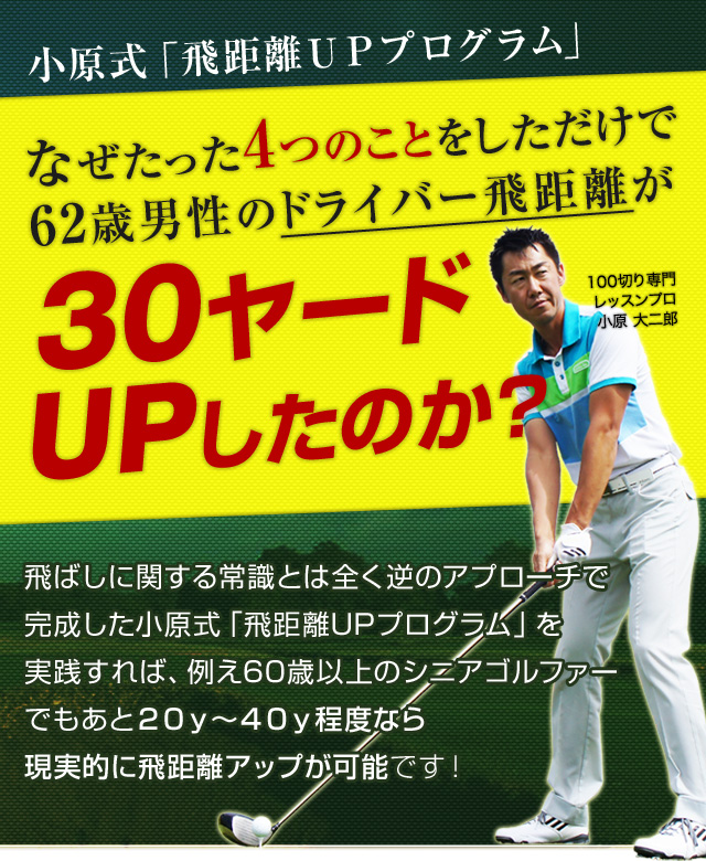 あなたがスコアを伸ばしながら現実的に20y~40y飛距離アップするという、このプログラムのコンセプトに賛同いただけたのであれば、ぜひ自信を持ってお勧めしたい内容になります。