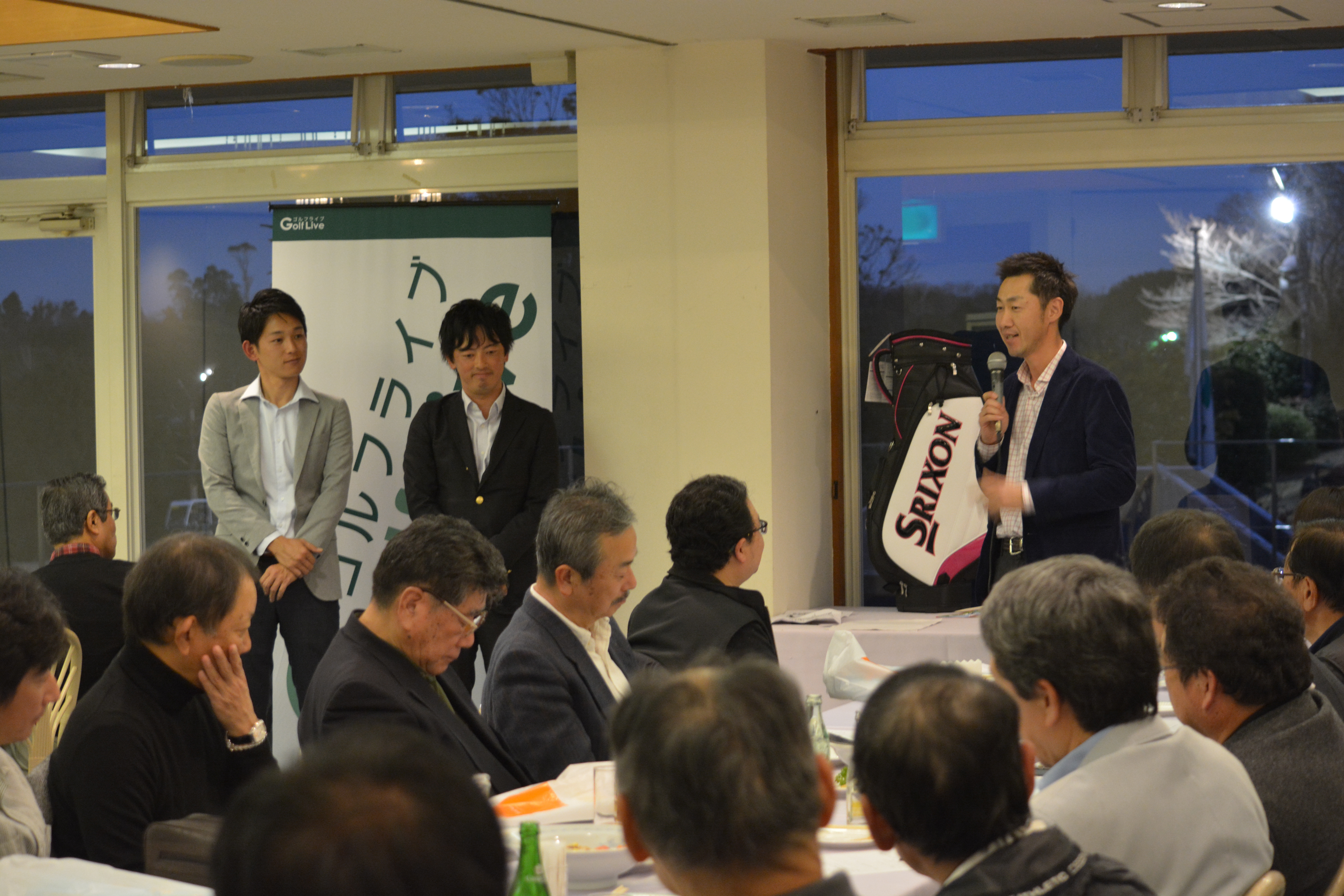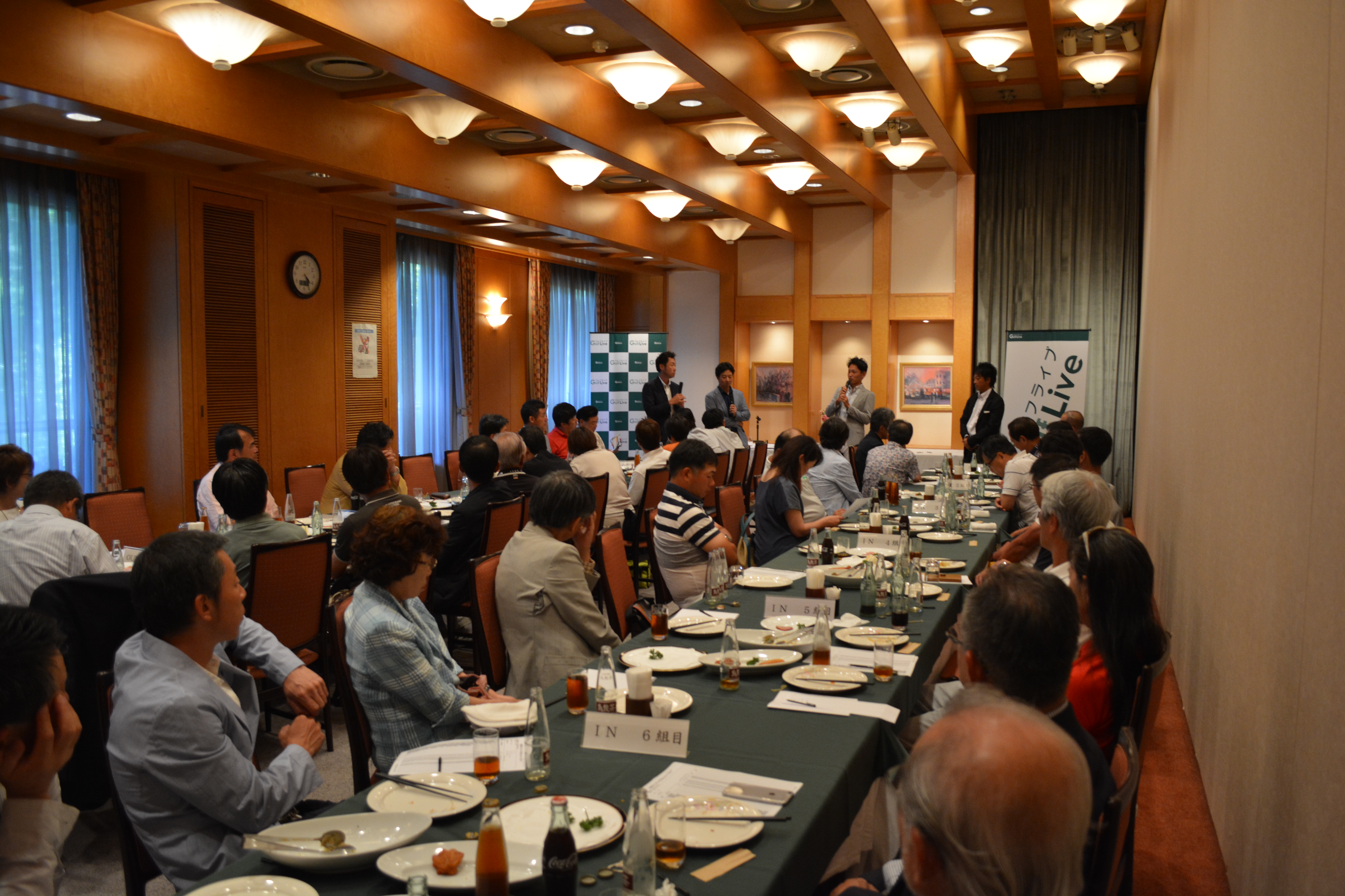 18ホールのラウンドが終了し、しばらくくつろいだ後には、コンペルームで軽食を食べながらの座談会です!
