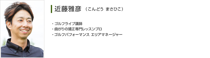 東京都出身。立教大学を経て、茨城、千葉県内のゴルフ場をベースにツアー出場を目指し経験を積む。プロキャディ経験も豊富にあり、ゴルフに対する知識と経験は人並み外れた量をもつ。JPGAティーチングプロを取得し、本格的にレッスンプロとして活動してからは1日でスライスを解消させるなど、ミスショット矯正のスペシャリストとしてメディアでも話題に。現在、ゴルフパフォーマンスエリアマネージャーに就任。近藤コーチのレッスンを受けるために、沖縄や北海道からわざわざ通うファンも多い。