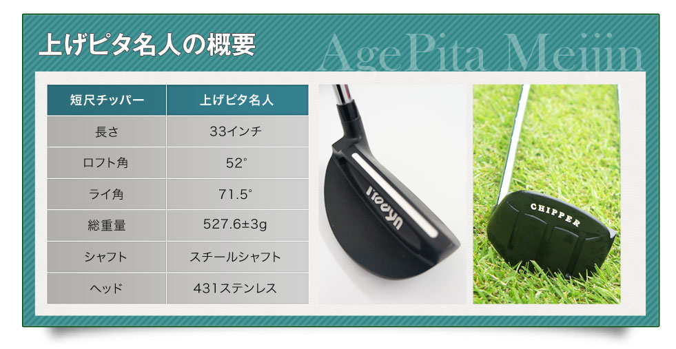 - 転がし名人はロフト角が35°で、約17°ロフト角が異なります。そのため、ボールの浮き上がりが異なり、上げピタ名人の方がボールが上がる仕様になっています。転がし名人は、上げる必要がないとき、上げピタ名人は障害物などがピン方向にあって、それを超えたいときに用いるとよいでしょう。