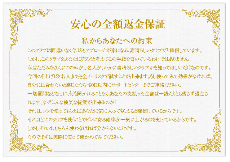 私はただみなさんにこの上げピタ名人が、いかに素晴らしいクラブかを知ってほしいだけなのです。