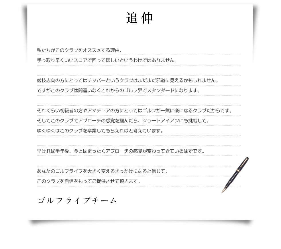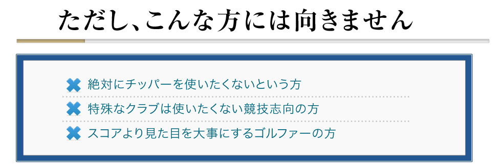 ユーティリティや7番ウッドが登場した時と同じように、まだチッパーというクラブは万人に受け入れられるクラブにはなっていません。
