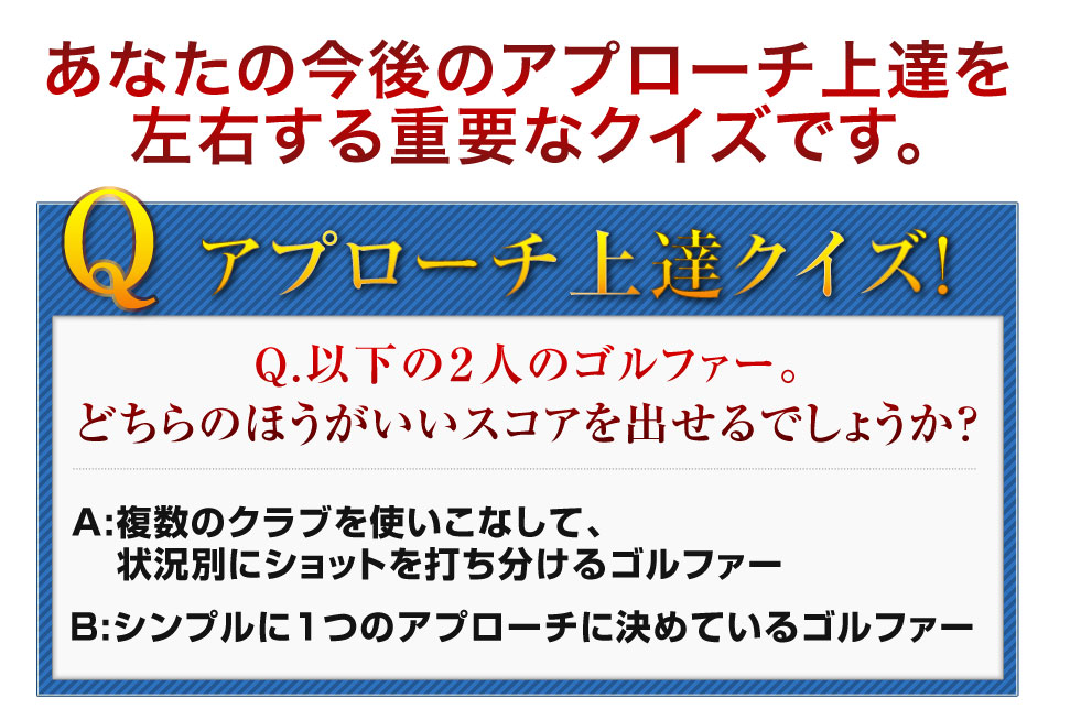 実は、アプローチショットはたった1種類のショットさえ覚えておけばどんな状況にも応用できるのです。