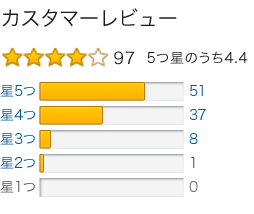 実際に97人の方が本の評価をされていて、5つ星のうち4.4の星を獲得するなど高い評価を得ています