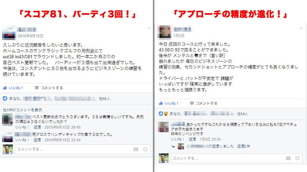 そして毎日のようにFacebook上で「ベストスコア達成」、「ハンディ更新」という報告が飛び交っています。