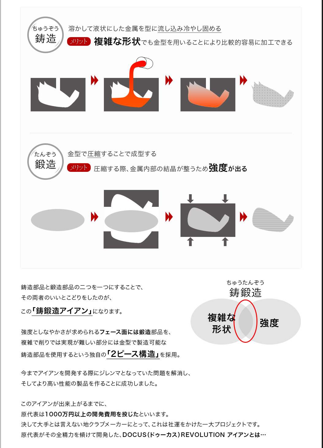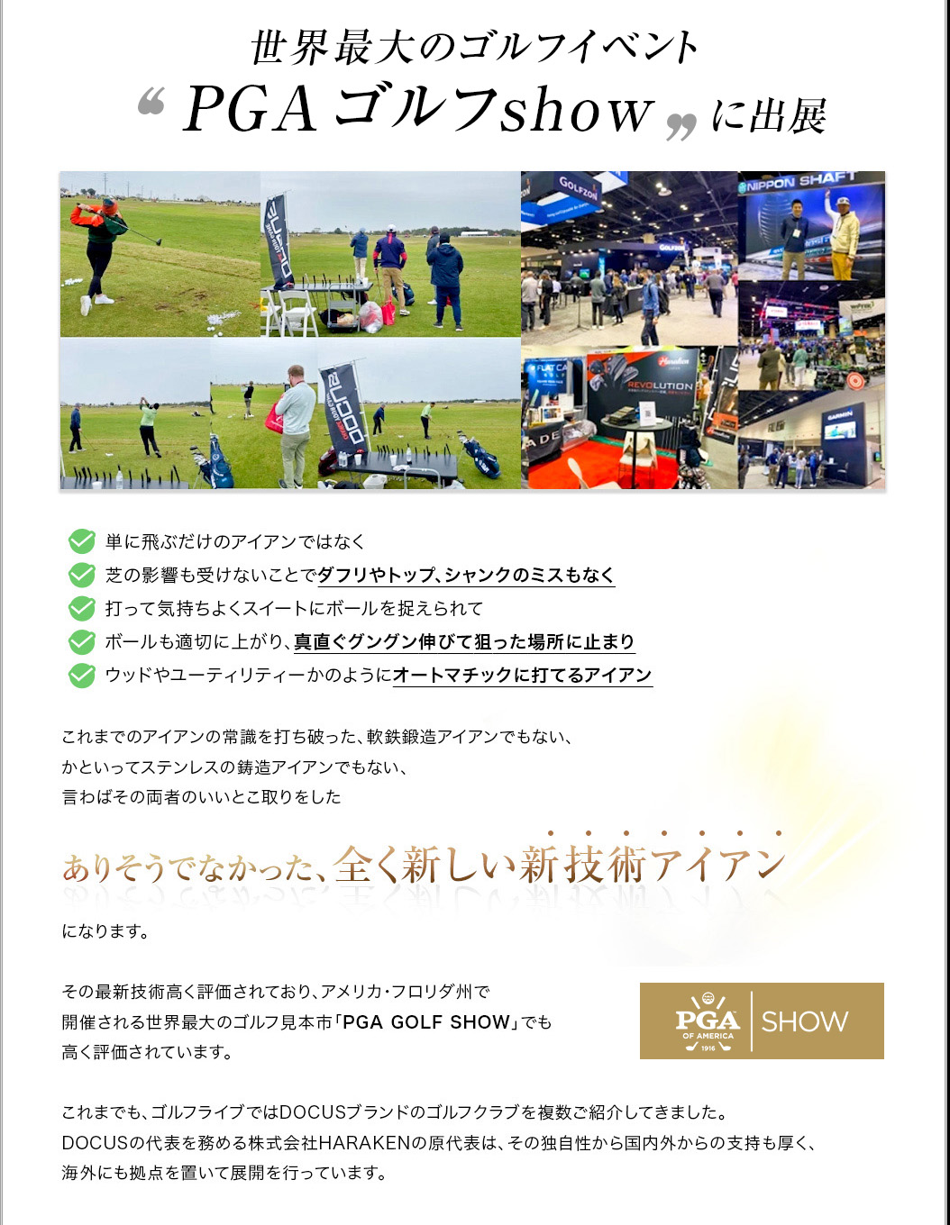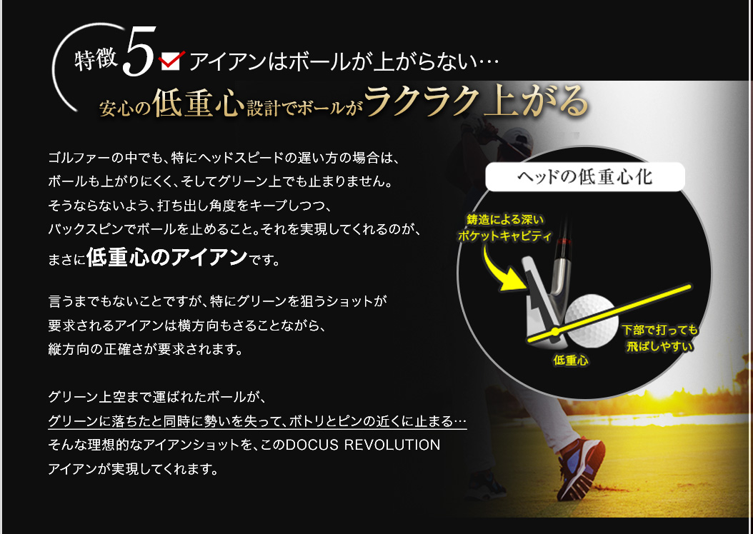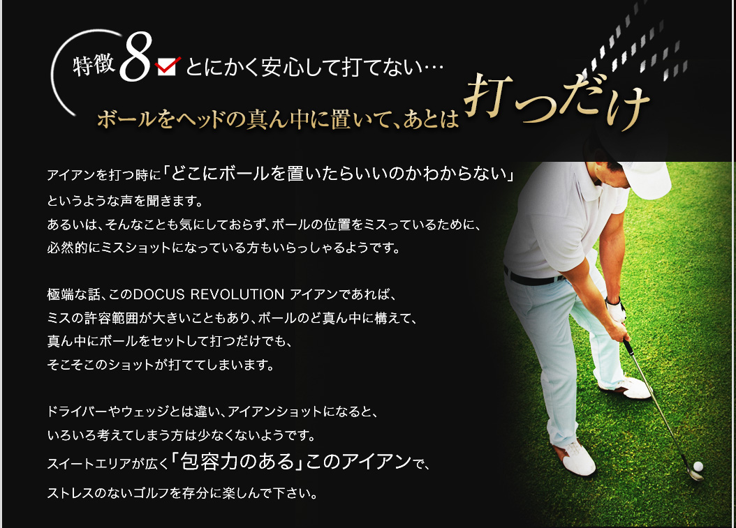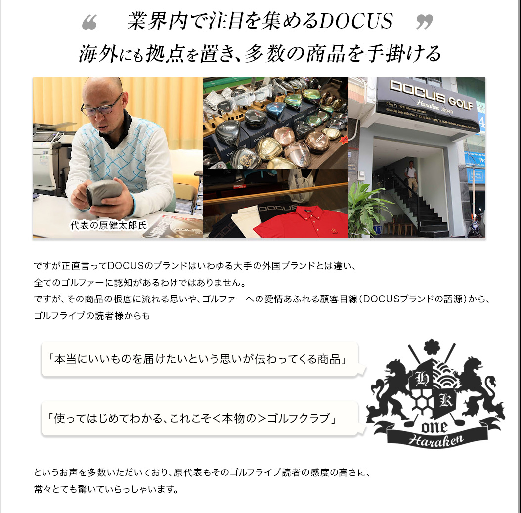「軟鉄鍛造がいい、というふうにだけ思っていて、自分もずっと軟鉄鍛造のアイアンを背伸びして使っていましたが、鍛造には鍛造のデメリットがあるんですね。イメージだけで決めつけるのはいけないなと思いました。DOCUSさんの考え方というか、信念のようなものを感じさせるアイアンですね。そうした考えにも共感して、使ってみたいと思います。」