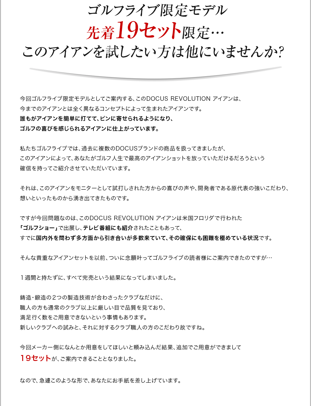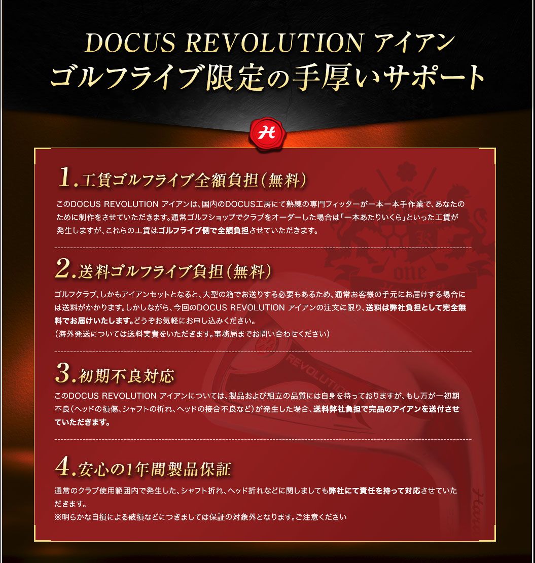 さらに、先ほどもお伝えしましたように、ゴルフライブだけの特典や、手厚いサポートもありますので、安心してお買い求めいただけます。購入前に気になることや相談事がありましたら、なんなりとお問い合わせ下さい。