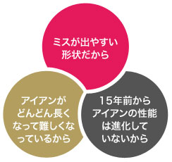 なぜ、アイアンはこんなにも難しいのでしょうか? その原因は大きく分けて3つあります。それは、