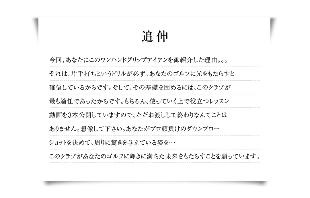 ワンハンドグリップアイアン、アップグレード記念キャンペーン! 7/11(火)~7/17(月)まで