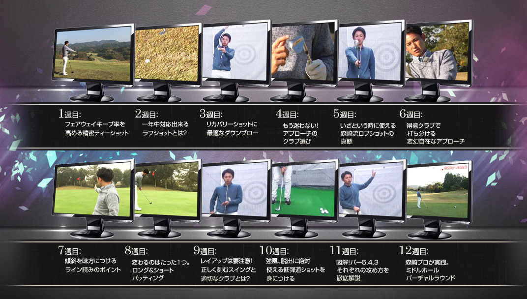 様々な上達メソッドをお伝えしますが、最終週では、実際に森崎プロがどのように考えてコースを回っているのか、それを全て公開するバーチャルラウンドをご覧いただけます。